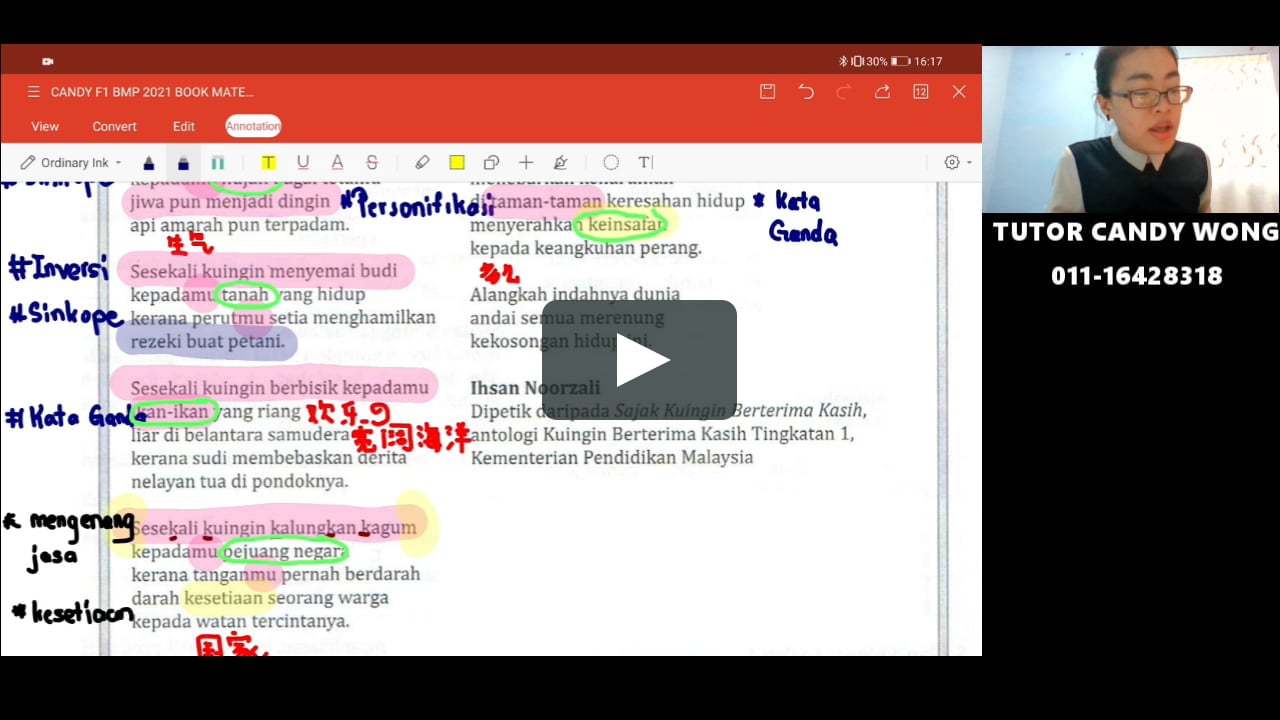 Latihan Sajak Kuingin Berterima Kasih 马来文线上 补习班 Youtube